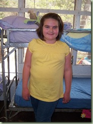 Here she is in front of her bunk. Hers is the top one decked out in an egg crate, mattress cover, 400 thread count sheets, and her favorite Foster's Home for Imaginary Friends blanket and as many of her stuffed animals as she could squeeze into her already very full trunk. I'm pretty sure her counselor mocked the "high maintenance" bedding but I'm also pretty sure she was just jealous. I have no doubt Zoë had the best bed in all of camp. 2 seconds after I took this picture, I got THE LOOK. Ya know ... the look that says ba-bye ... get along ... scram. Ouch. I have yet to get that look. Anyway ... I hope she is having a great time. I really miss her and check the camp website maniacally for a chance glimpse of her in the candid camp pics they post for loser parents such as myself. So far I have seen her butt and left leg and her arms and water bottle. Leave it to my child to make sure she isn't REALLY in any of the pictures.