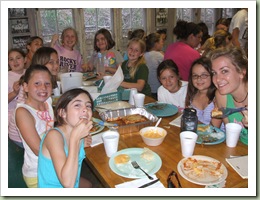 At last! An actual photo of Zoë from summer camp. I have obsessively poured over the photo and tried to glean as much information as possible from it. I'm not sure if any of what I came up with is actually true or not but I do know that she is being fed, isn't sunburned or dead, and isn't sitting in the corner rocking back in forth while in the fetal position.
